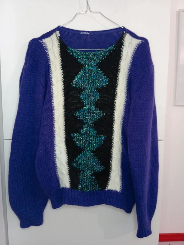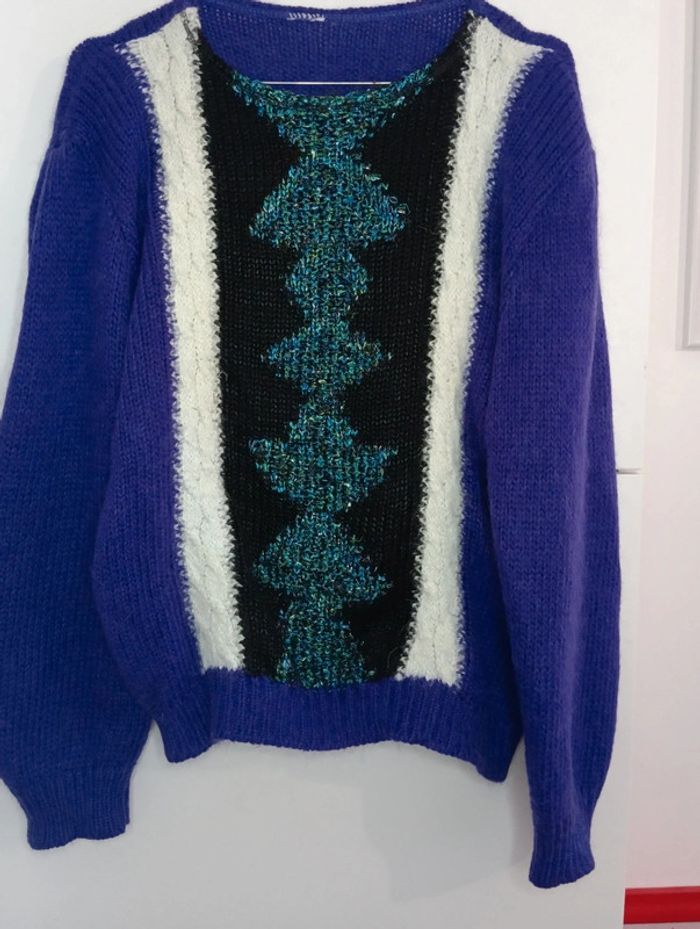 Pull en laine chaud vintage violet 80's taille 40/42 estimée à confirmer avec les mesures. Mesures Épaules 51cm Aisselles 57cm Longueur 54cm
