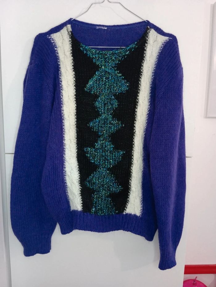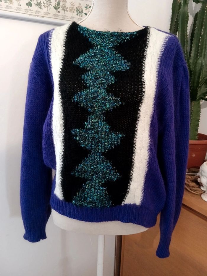 Pull en laine chaud vintage violet 80's taille 40/42 estimée