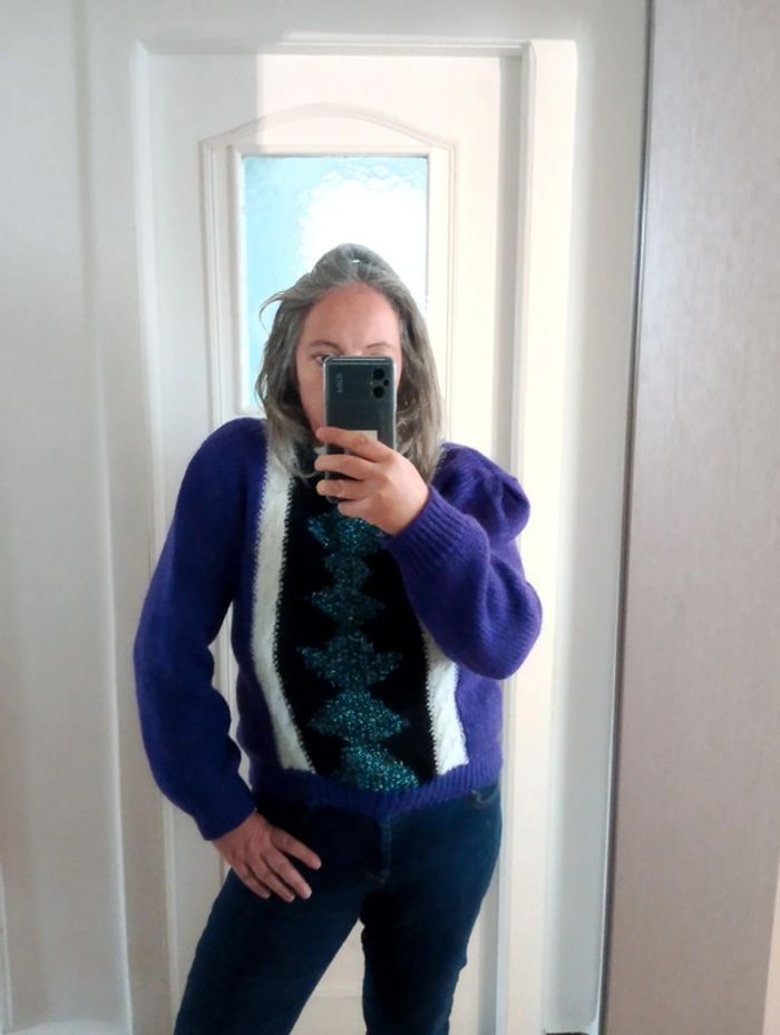 Pull en laine chaud vintage violet 80's taille 40/42 estimée - photo numéro 6
