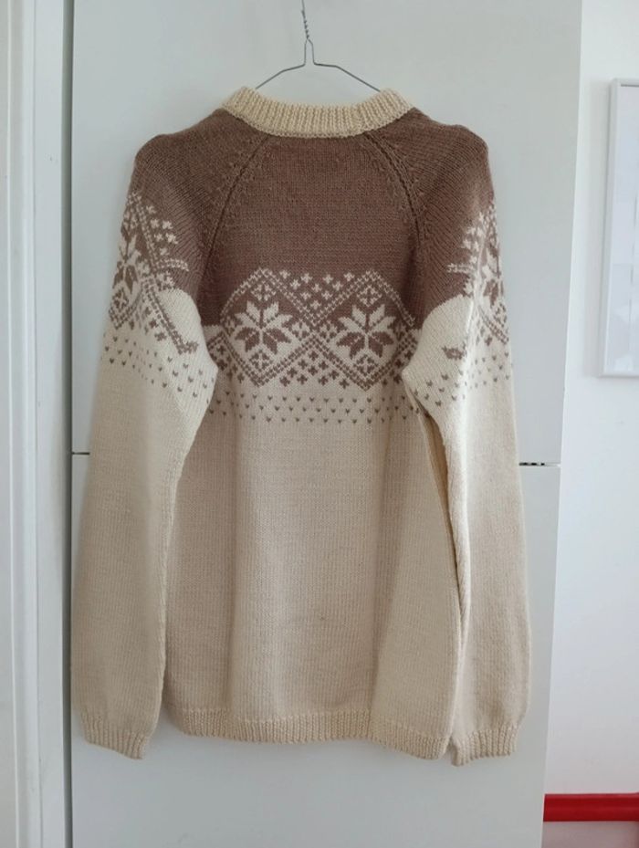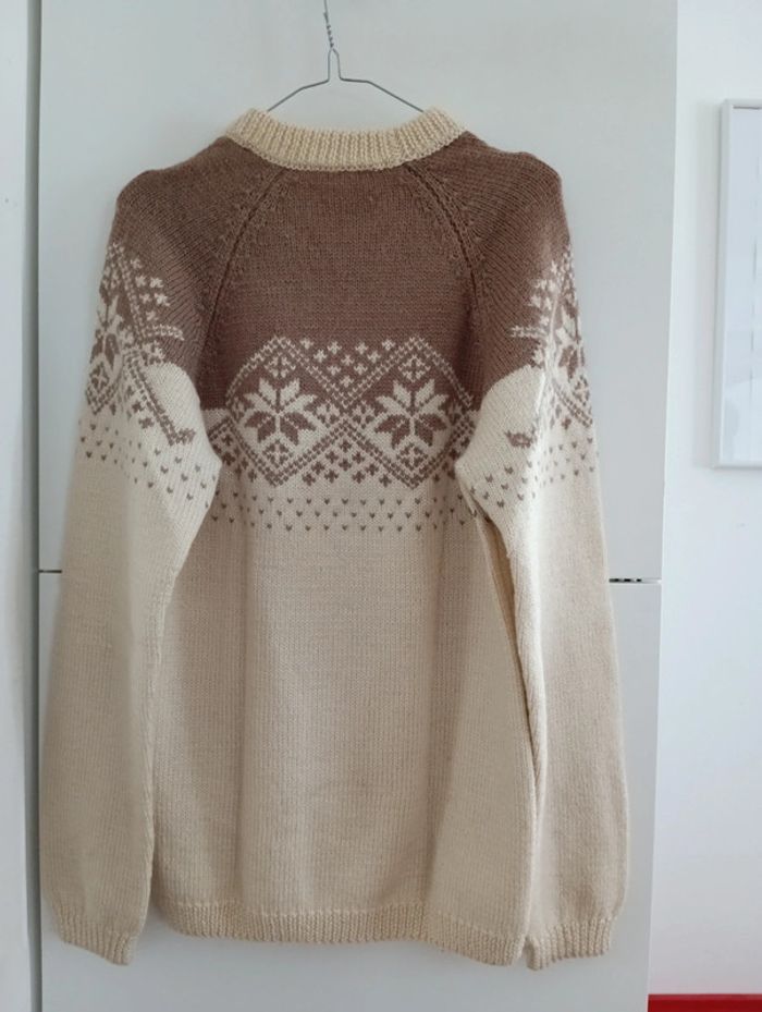 Gros pull en laine beige et marron motifs montagnard - photo numéro 8