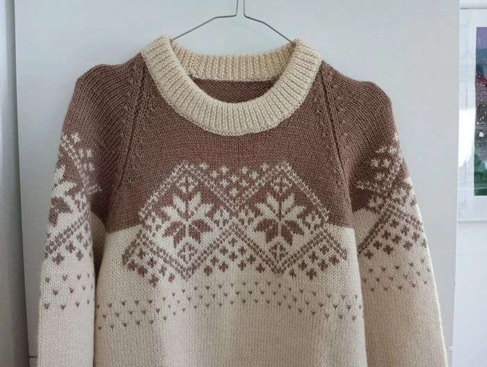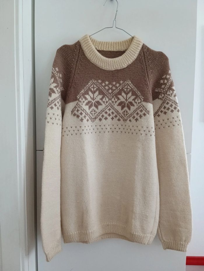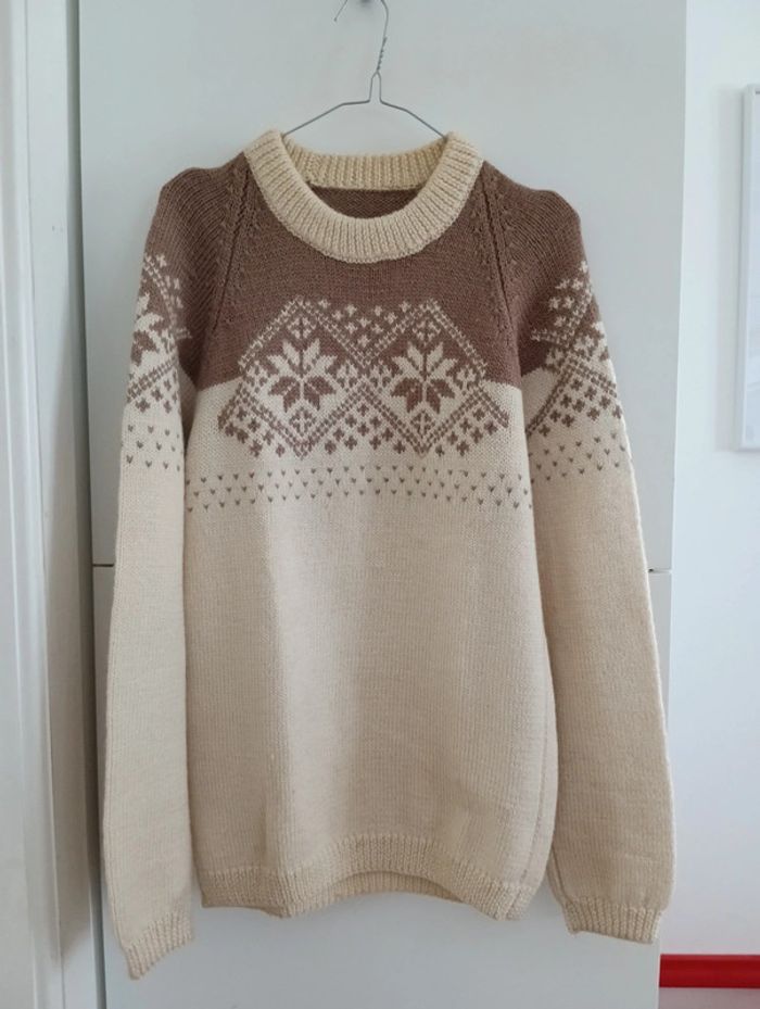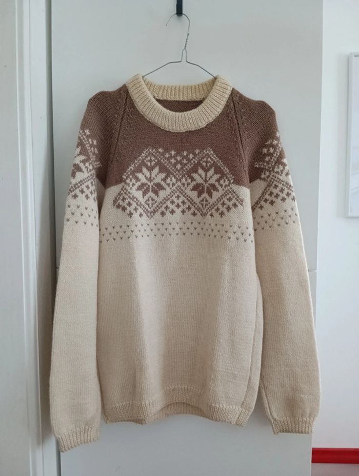 Gros pull en laine beige et marron motifs montagnard - photo numéro 1