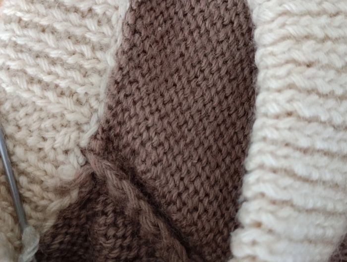 Gros pull en laine beige et marron motifs montagnard - photo numéro 7