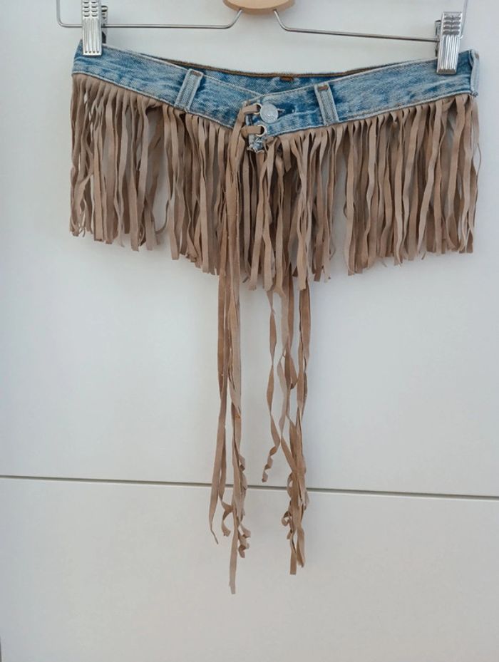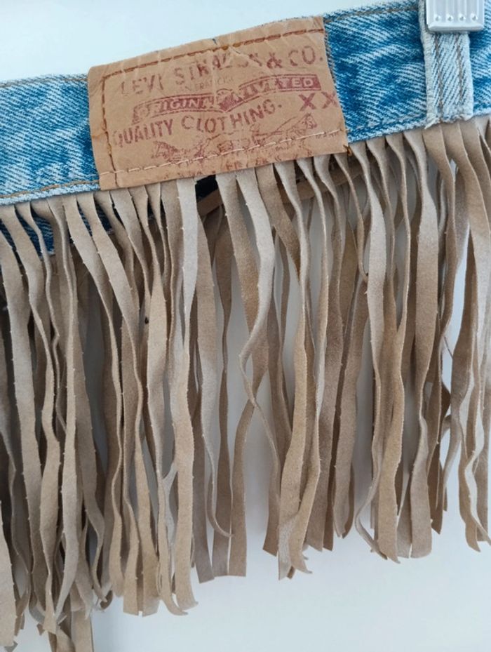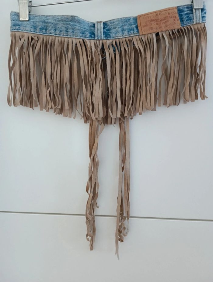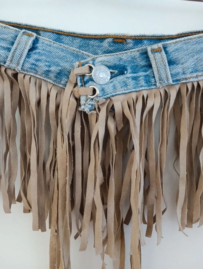 Ceinture à frange réalisée à partir d'une ceinture de Levi's 501 made in Usa