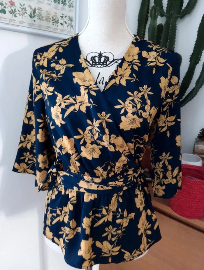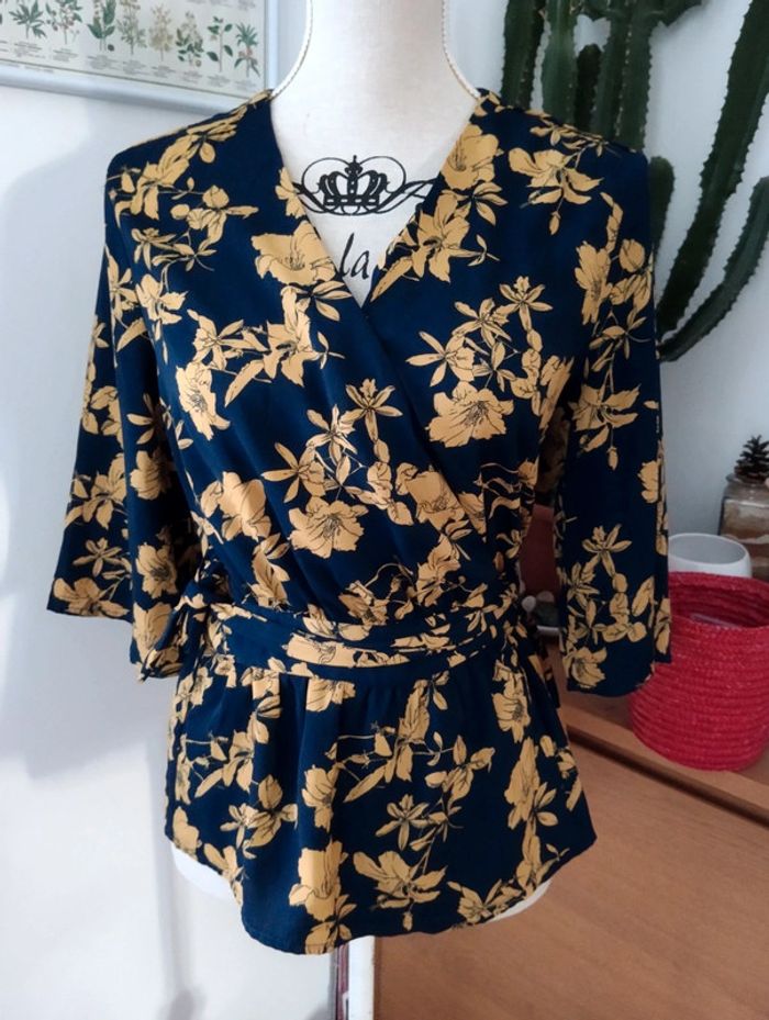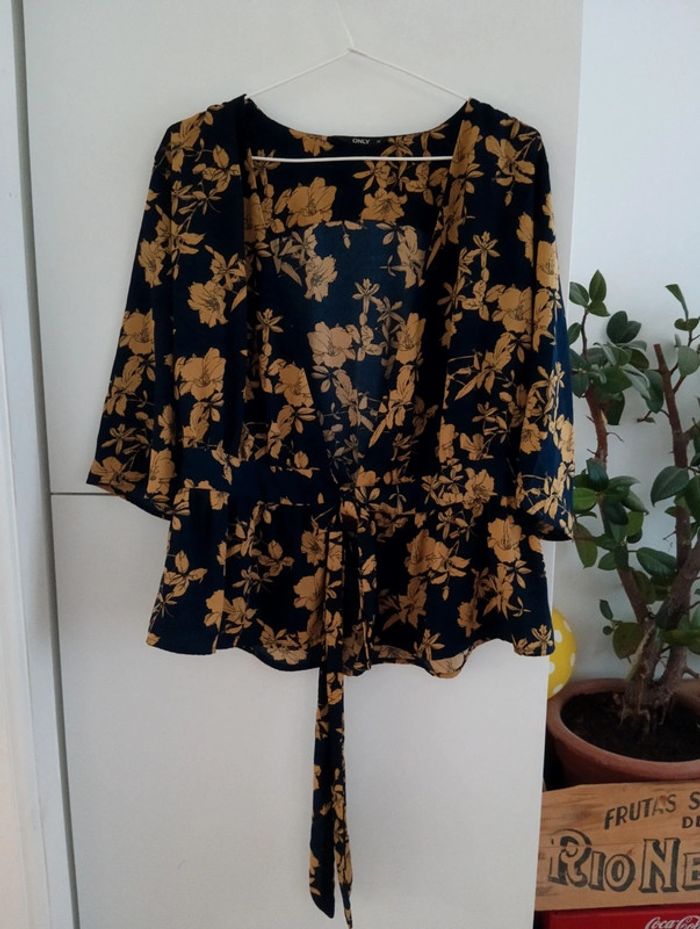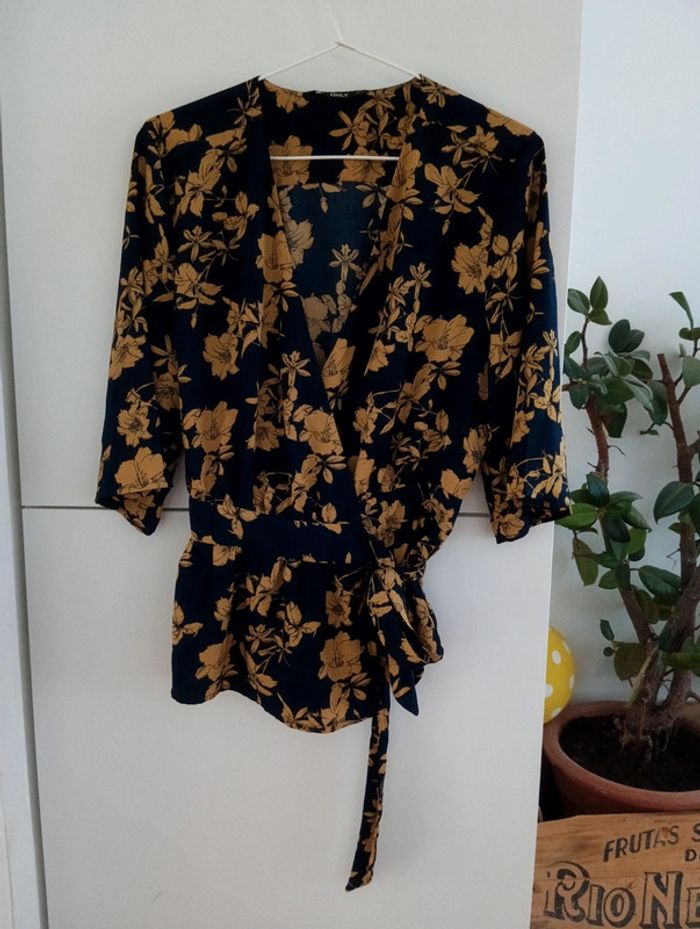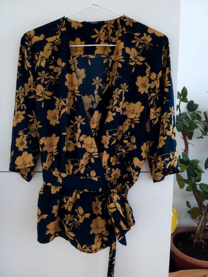 Blouse fluide cache coeur fleurie only taille 36 Bas volanté Marine et moutarde