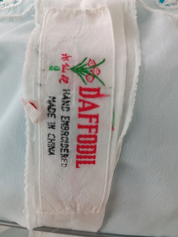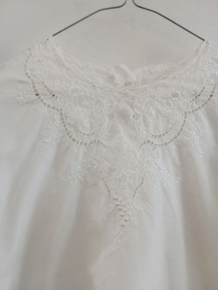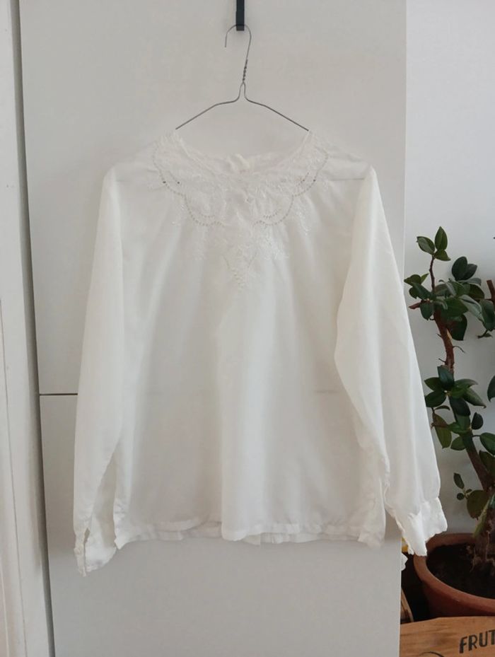 Blouse vintage boutonnée dos Daffodil Col plastron brodé taille 40 estimée à confirmer avec les mesures Matière synthétique légère Mesures Épaules 40cm Aisselles 55cm Longueur 64cm