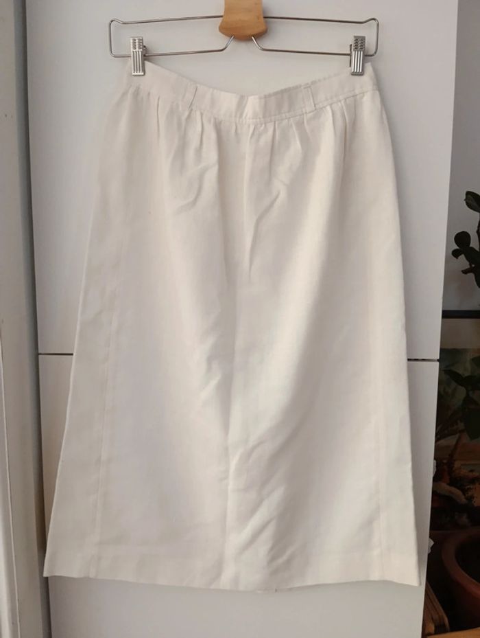 Jupe vintage boutonnée longueur midi blanc texturé polyester mélangé - photo numéro 1