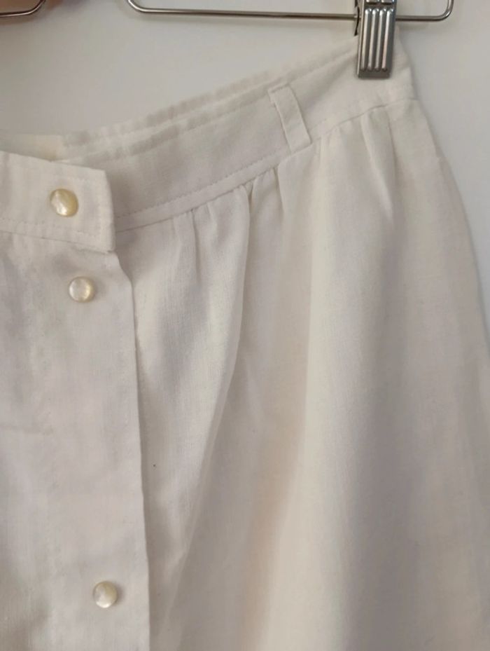 Jupe vintage boutonnée longueur midi blanc texturé polyester mélangé Aucune étiquette Mesures Taille 36cm Longueur 73cm