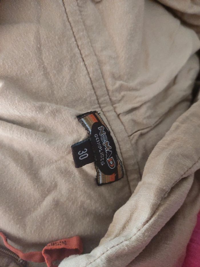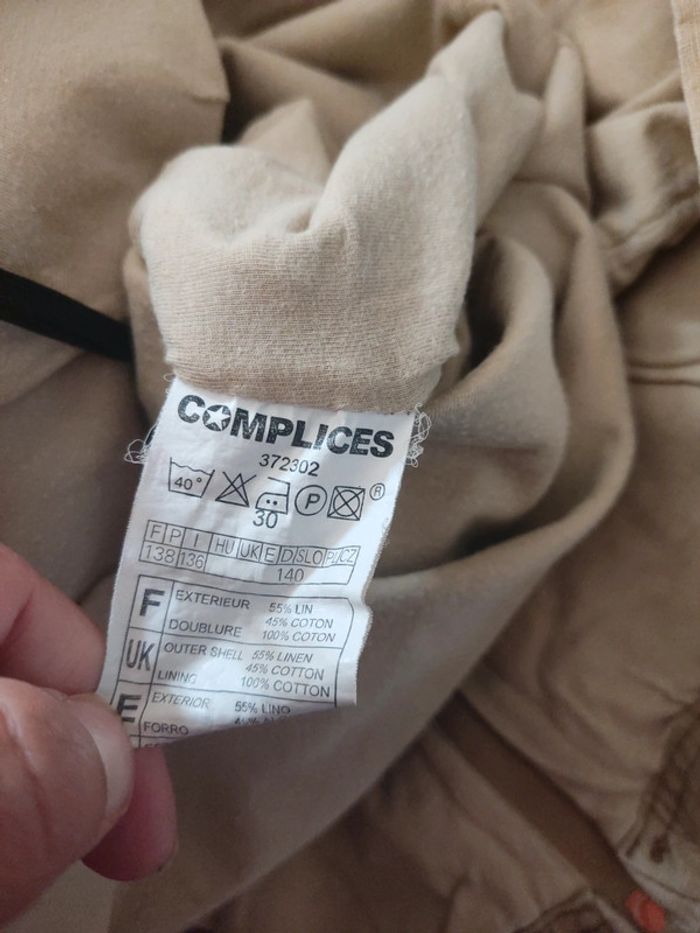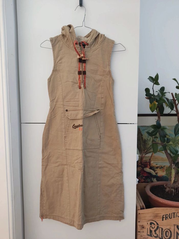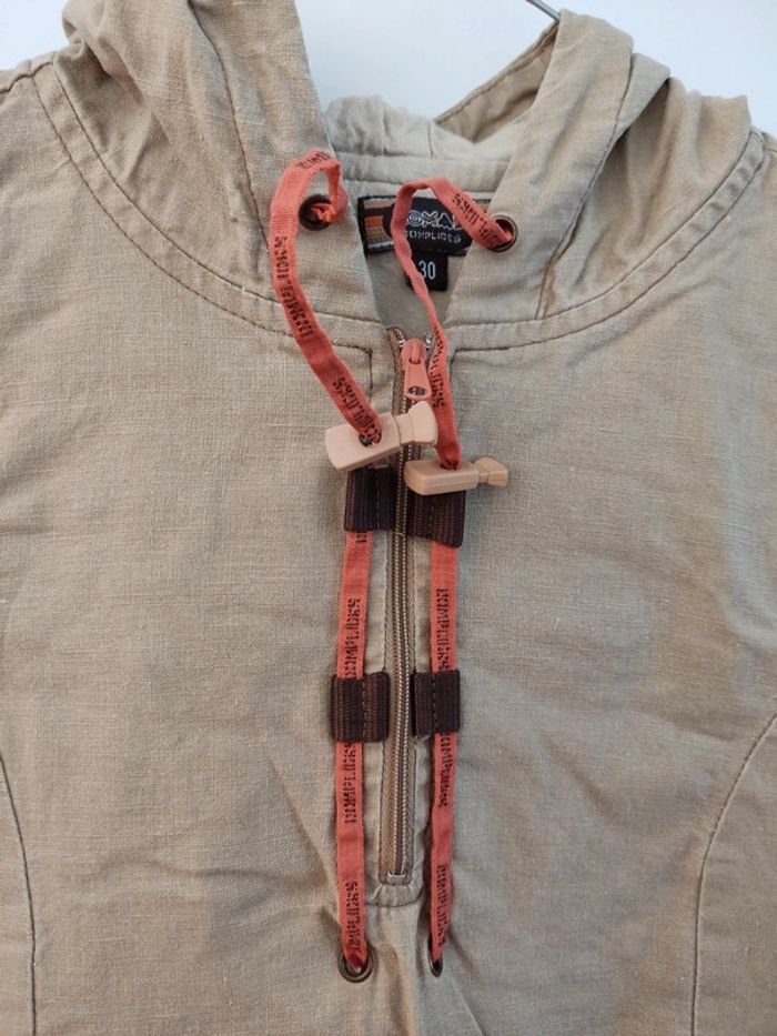 Robe beige à capuche 2000's Y2K Poche à l'avant Fermeture des 2 côtés en bas Lin et coton, doublée De la marque complice