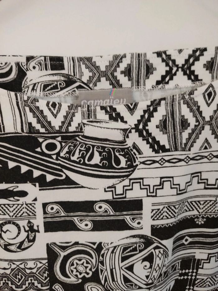 T shirt en coton vintage coupe droite motifs graphiques taille 42 Camaïeu vintage Epaules 55 Aisselles 55 Longueurs 66 2 poches plaquées en bas