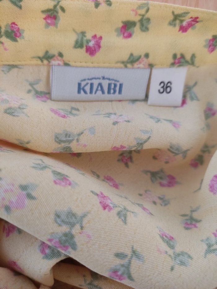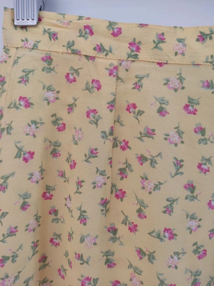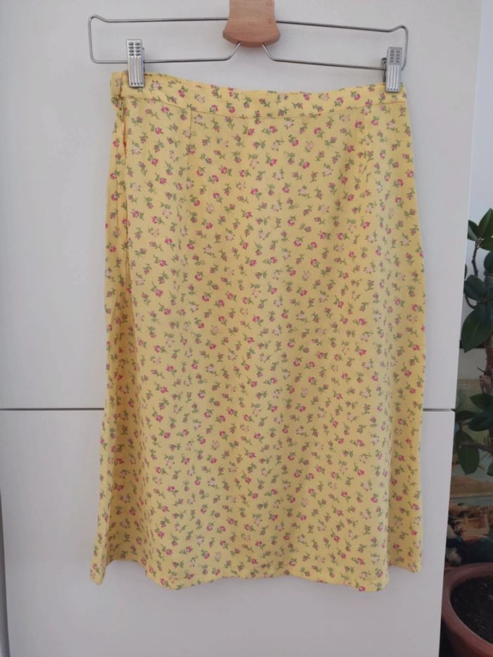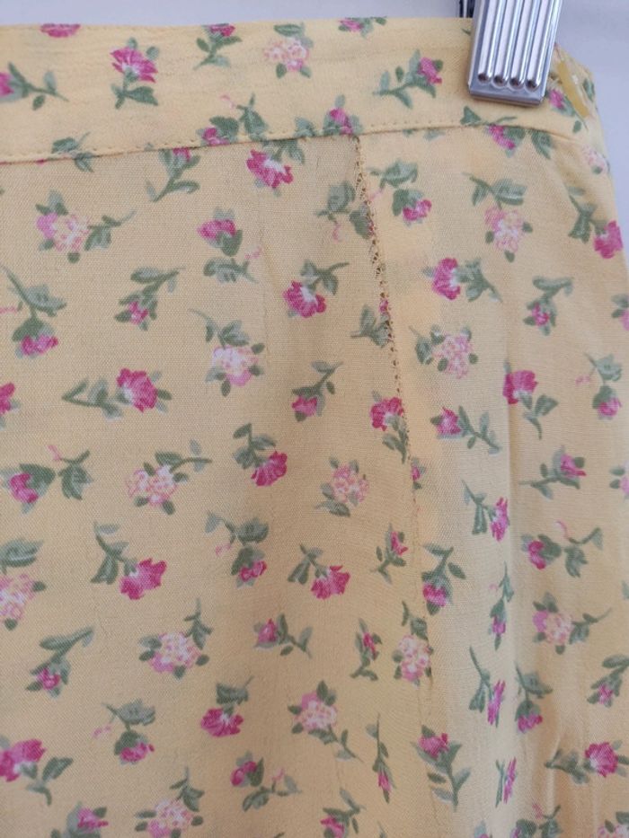Jupe vintage jaune à fleurs en viscose longueur genou, vaporeuse taille 36 - photo numéro 7