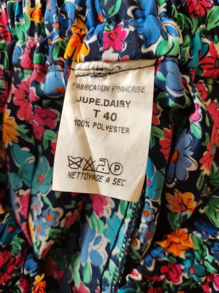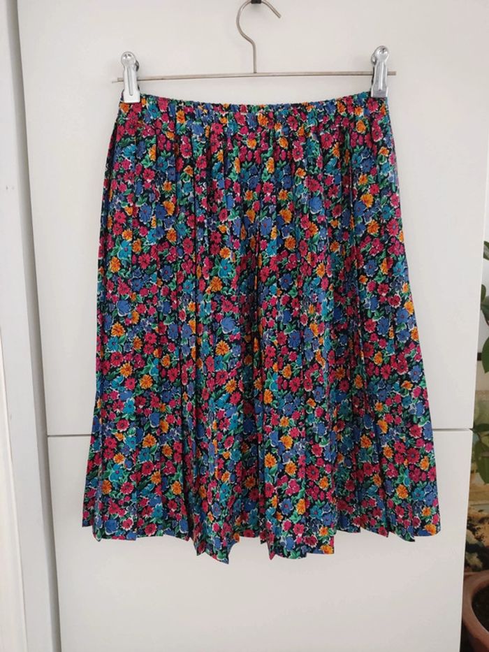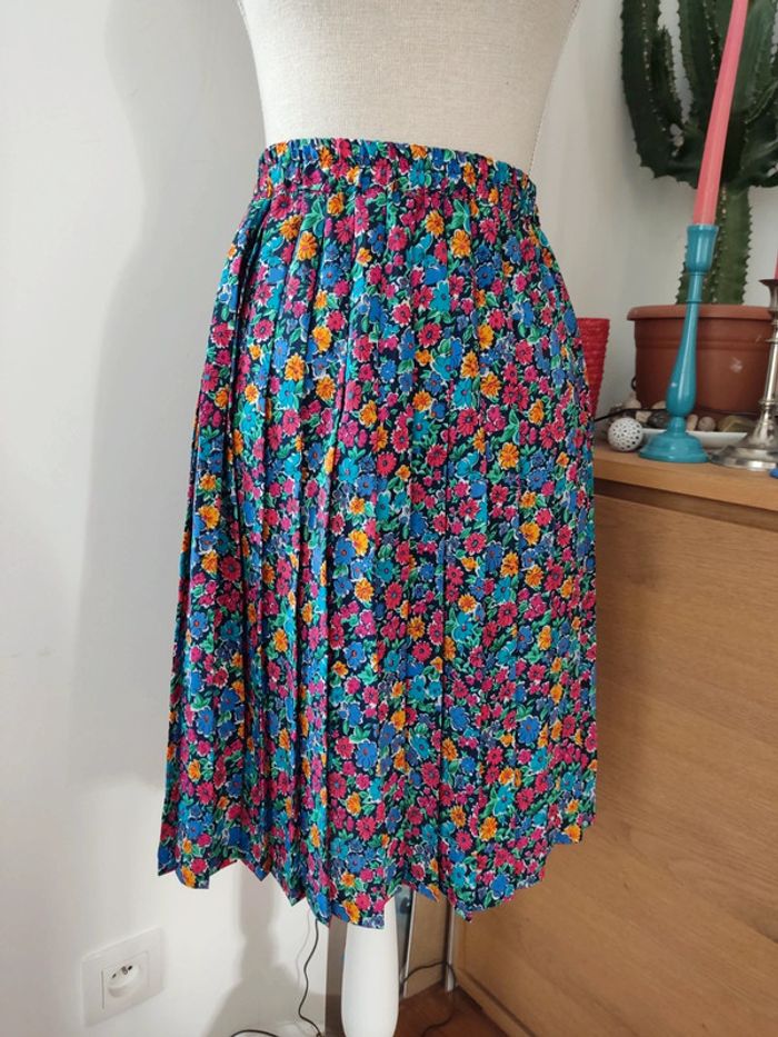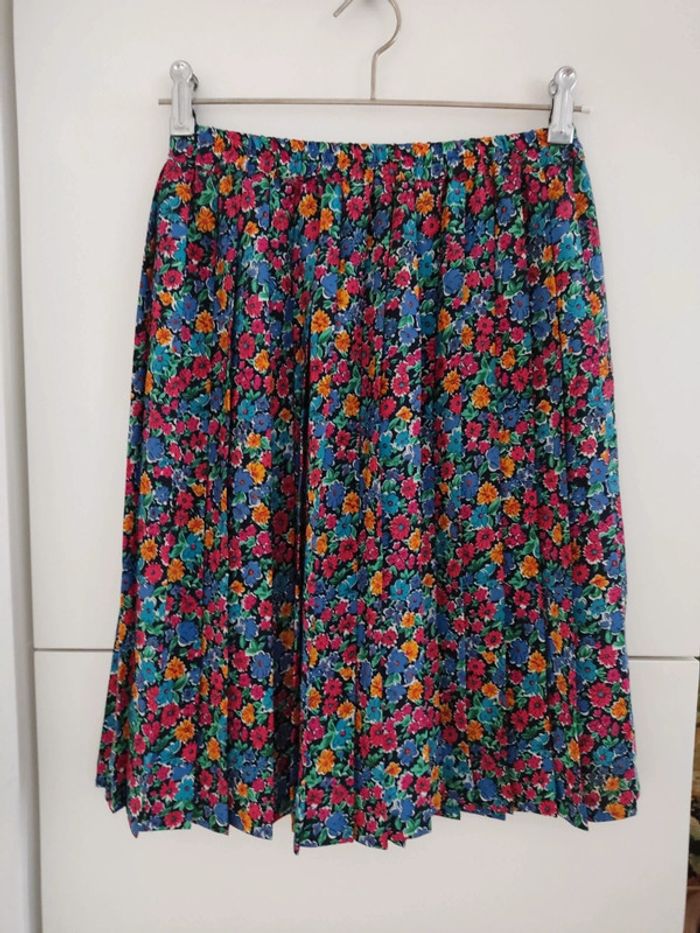 Jupe plissée à fleurs multicolores Vintage fabriquée en France Taille extensible de 31 à 46cm Longueur 56cm Matière synthétique