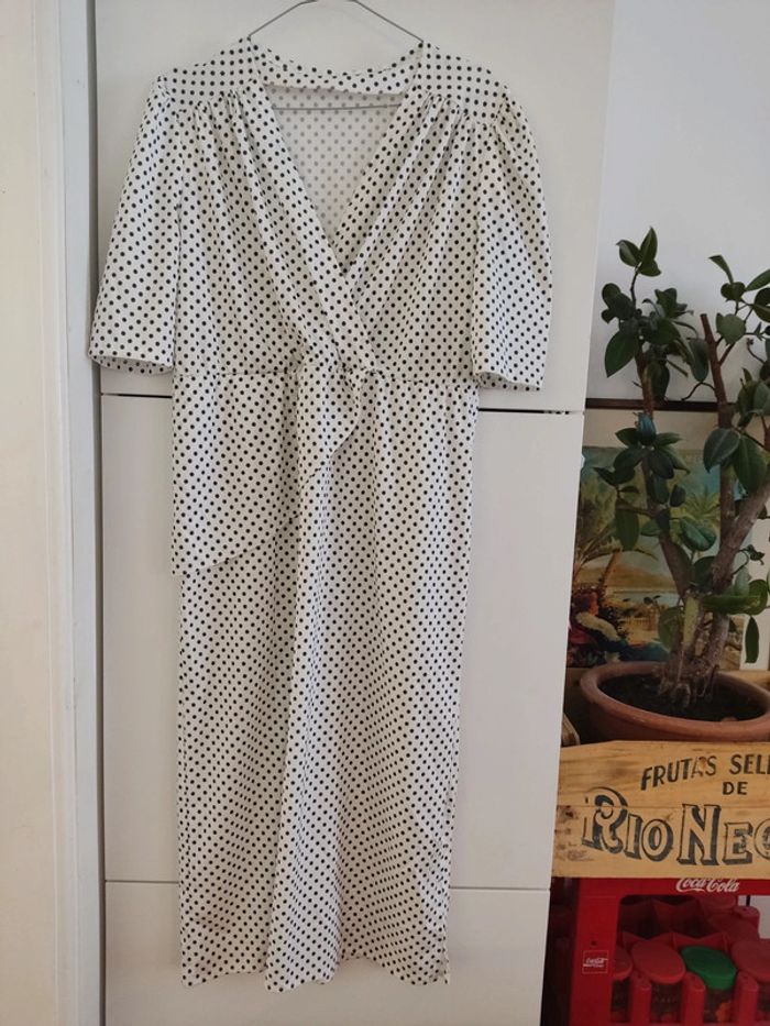 Robe blanche à pois noir vintage taille 38 très bon état - photo numéro 1