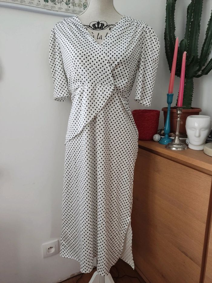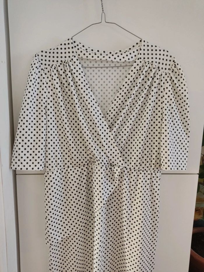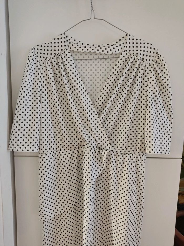 Robe blanche à pois noir vintage taille 38 très bon état - photo numéro 3