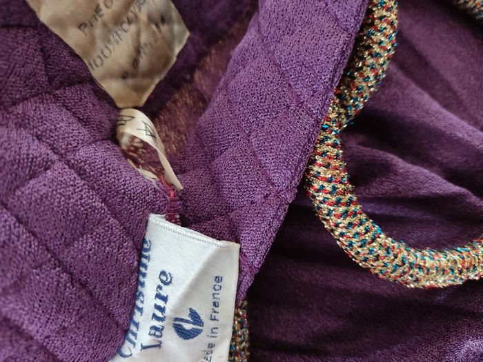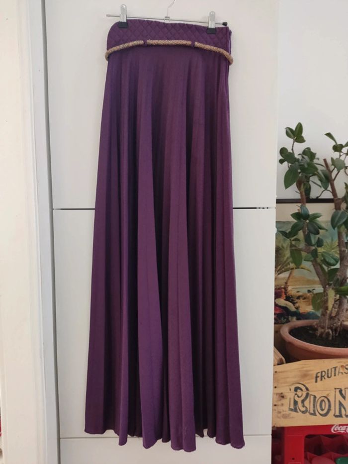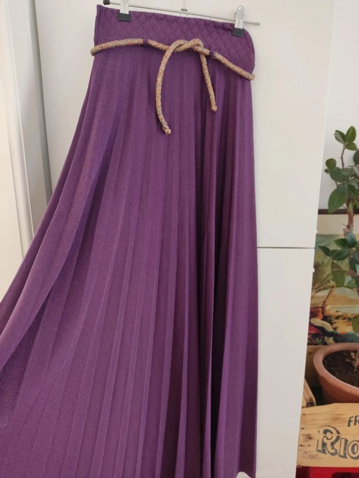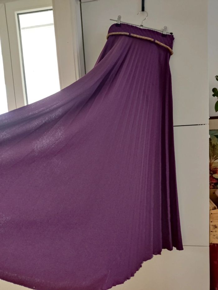 Incroyable Jupe longue plissée violette transparente Christine Laure made in France vintage Taille matelassée Ceinture dorée lien élastique Quelques fils tirés, ne se voit pas quand la jupe est portée Mesures Taille 32cm Longueur 108cm
