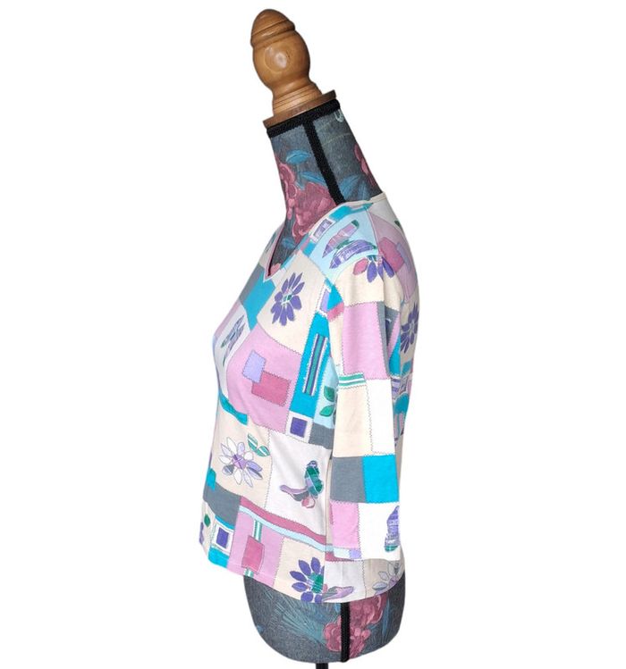 T-shirt manches 3/4 style patchwork Taille S Épaule à Épaule 37 cm Longueur 51 cm En très bon état #lili7606tailleS #lili7606tshirt #tshirtfemme36 #tshirtmanchecourte #tshirtpatchwork #tshirtpapillon36 #tshirtroseviolet