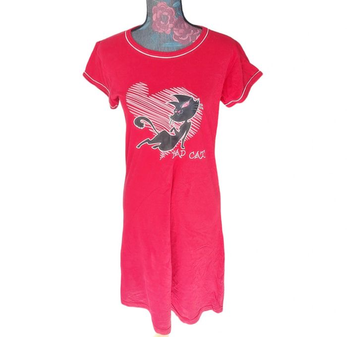 Chemise de nuit rouge rose imprimé Taille M Épaule à Épaule 39 cm Longueur 93 cm En très bon état #lili7606tailleM #lili7606ensemble #chemisedenuitchat38 #chemisedenuit38 #chemisedenuitrouge38