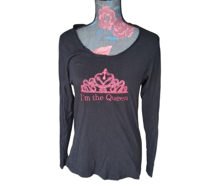 T-shirt noir imprimé Taille M Épaule à Épaule 39 cm Longueur 65 cm En très bon état #lili7606tailleM #lili7606tshirt #tshirtfemme38 #tshirtimprime38 #tshirtqueen38 #tshirtnoirfemme38 #tshirt38