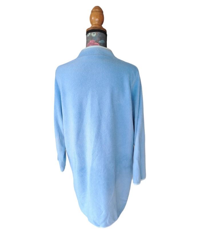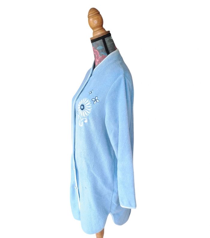 Gilet peignoir bleu Taille 42-44 Épaule à Épaule 40 cm Longueur 93 cm En bon état un petit trou et coude usé #lili7606tailleXL #lili7606tailleXXL #lili7606giletveste #vestepeignoir #vestepeignoirvintage #peignoirvintagefemme #peignoirgiletchaudfemmes