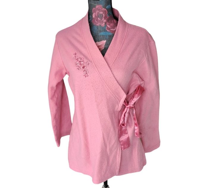 Peignoir rose court Taille 42-44 Longueur 69 cm En bon état #lili7606tailleXL #lili7606tailleXXL #lili7606giletveste #vestedepeignoirrose #peignoirrosefemme #peignoirrosevintage