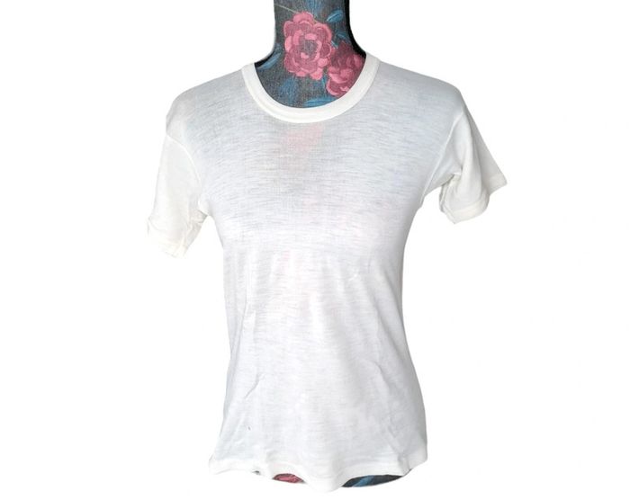 T-shirt blanc vintage Taille M Épaule à Épaule 39 cm Longueur 62 cm En bon état comporte des bouloches #lili7606tailleM #lili7606tshirt #tshirtfemmevintage38 #tshirtblancunivintage #tshirtblancfemme38