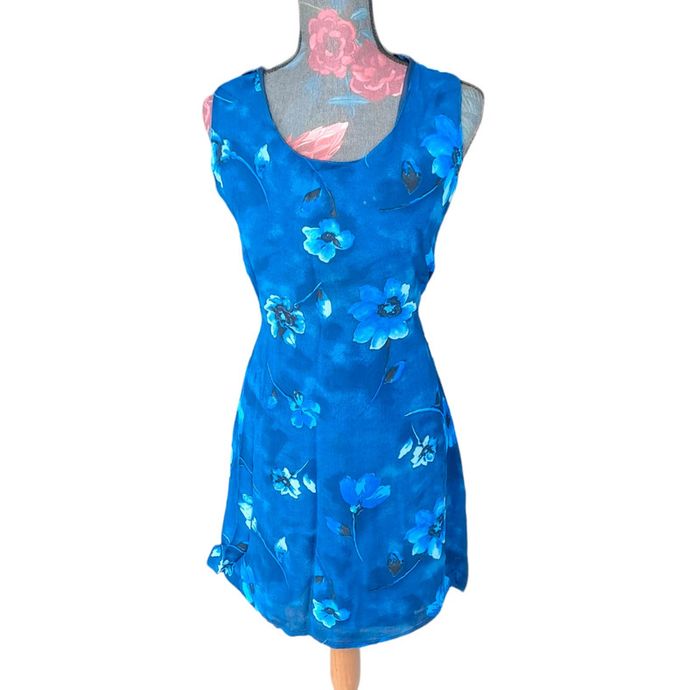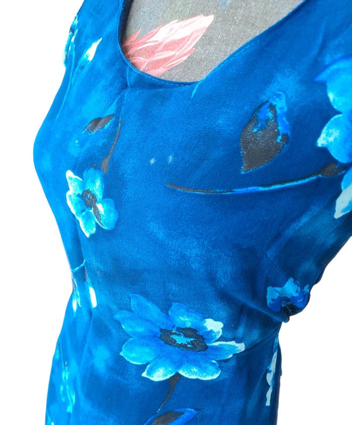 Robe bleue avec fleurs vintage. Fabrication française Taille M Longueur 87 cm En très bon état #lili7606tailleM #lili7606robes #robefemme38 #robevintage38 #robebleuefemme38 #robebleuevintage38