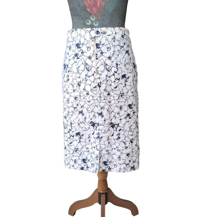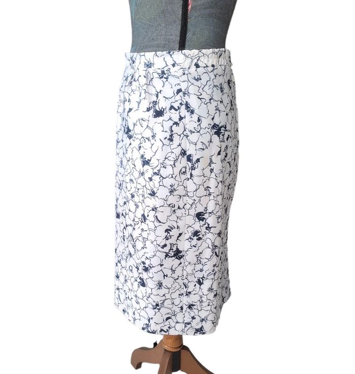 Jupe à motifs blanche et bleu marine . Comporte une doublure Taille S Largeur 36 cm Longueur 59 cm En bon état comporte une tache visible sur photo #lili7606tailleS #lili7606jupe #jupefemmevintage36 #jupevintage36 #jupelonguevintage36 #jupevintageamotifs