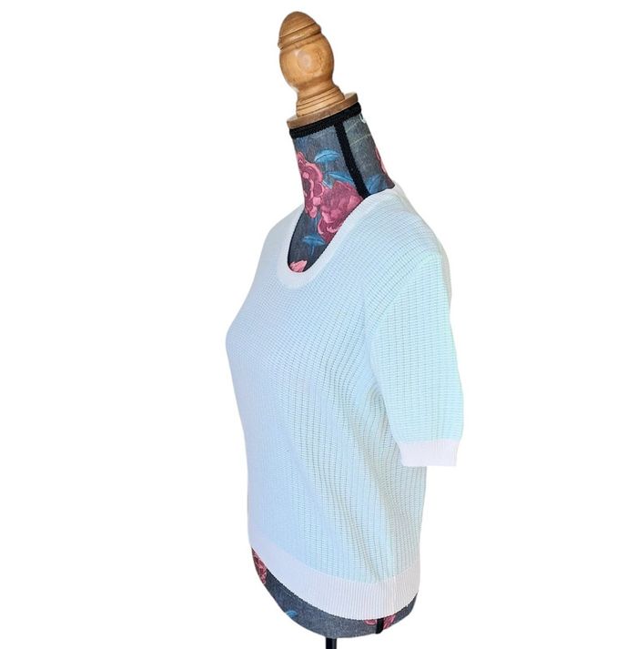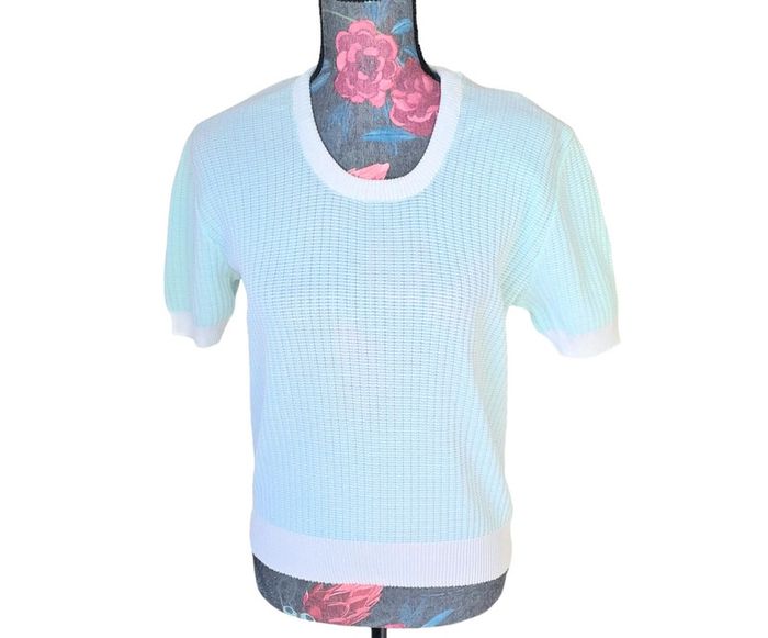 Haut blanc et bleu vintage Taille M Épaule à Épaule 39 cm Longueur 53 cm En parfait état #lili7606tailleM #lili7606tshirt #hautvintagefemme38 #hautvintage38 #hautfemme38 #hautblancbleuvintage38