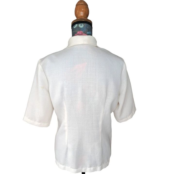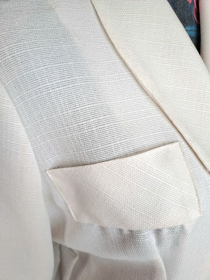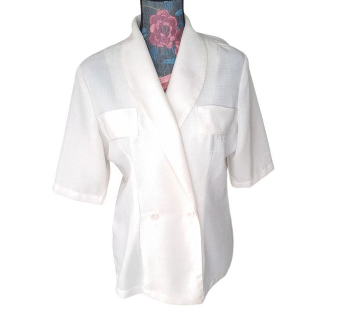 Veste blanche mi longue vintage . Jolie couture Taille L Épaule à Épaule 42 cm Longueur 64 cm En très bon état une micro tache peu visible (voir la dernière photo ) #lili7606tailleL #lili7606giletveste #vesteblanche40 #blazerblanc40 #vesteblazer40 #blazervintage40 #blazerfemme40