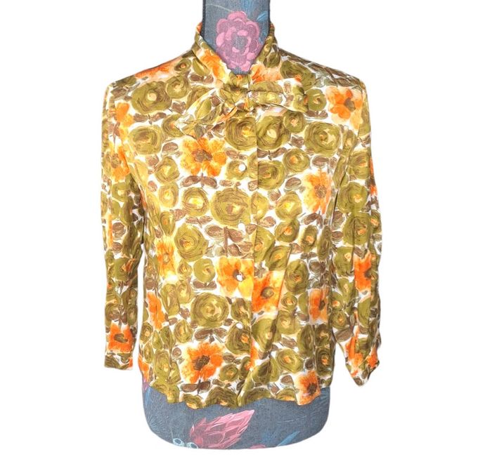 Chemise kaki et orange à motifs vintage Taille M Épaule à Épaule 40 cm Longueur 54 cm En parfait état #lili7606tailleM #lili7606chemise #chemisekaki38 #chemisefemme38 #chemisevintagefemme38 #chemisevintage