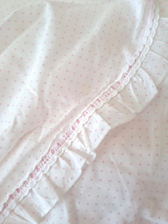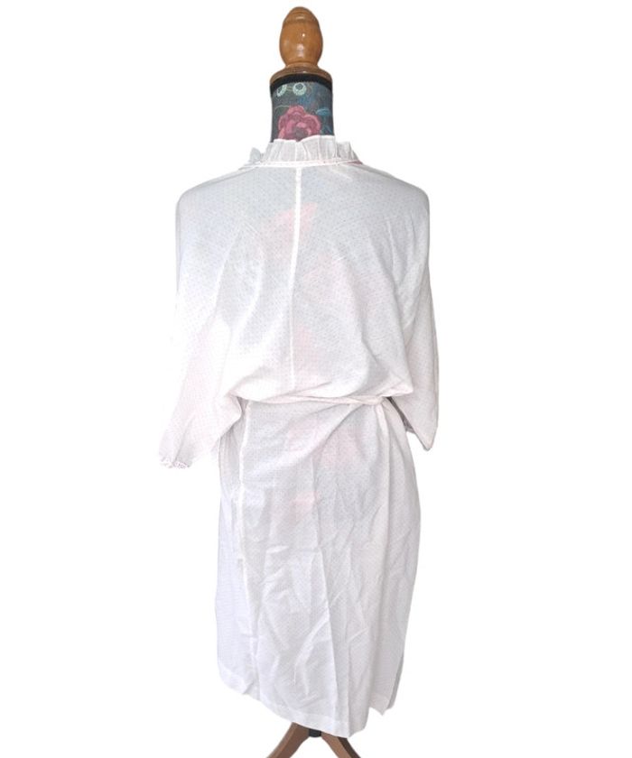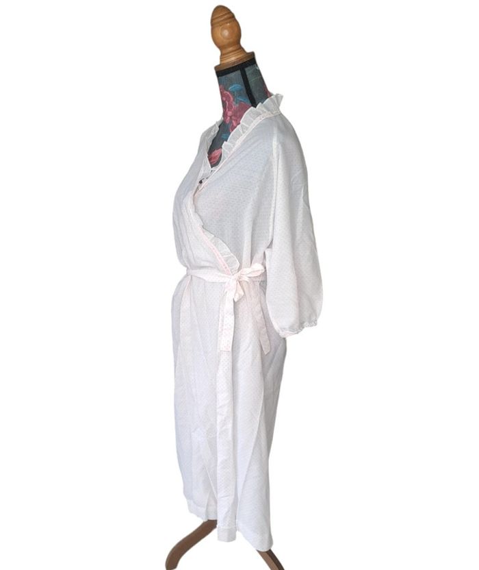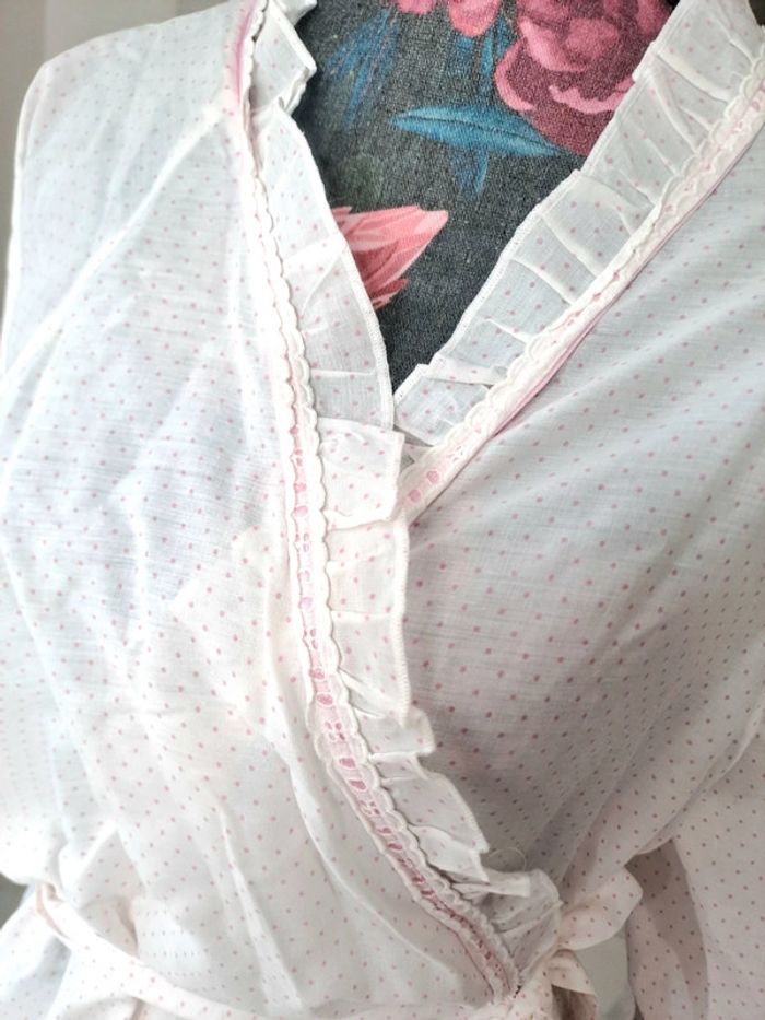 Chemise de nuit vintage blanche à pois rose. Se ferme en croisé Taille L Longueur 108 cm En très bon état #lili7606tailleL #lili7606ensemble #chemisedenuitvintage40 #chemisedenuitfemme #chemisedenuit40