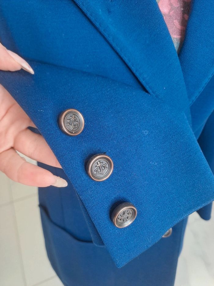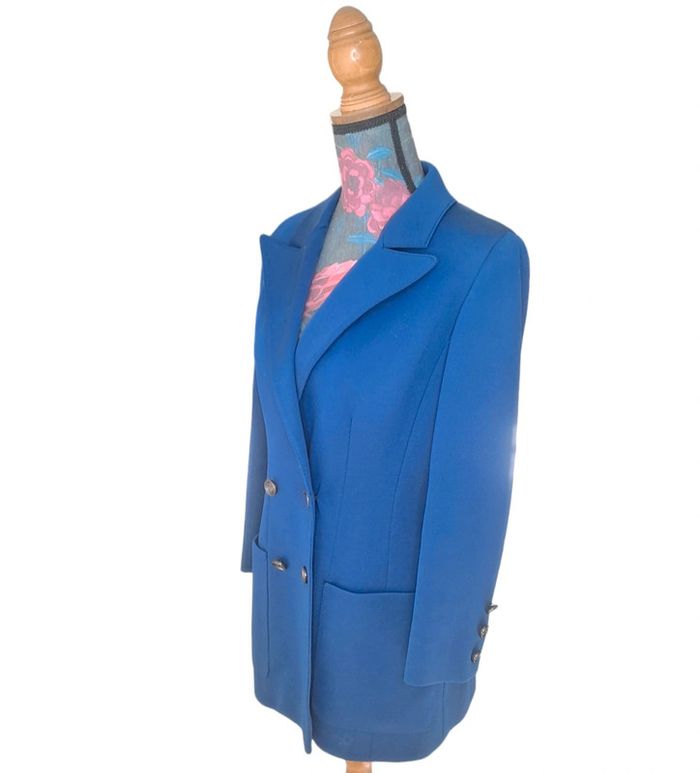 Blazer long bleu avec épaulettes Taille M Épaule à Épaule 37 cm Longueur 80 cm En très bon état hormis un petit accro visible sur photo #lili7606tailleM #lili7606giletveste #vestebleue38 #blazervintagefemme #blazervintage38 #blazervintage #blazerfemme38