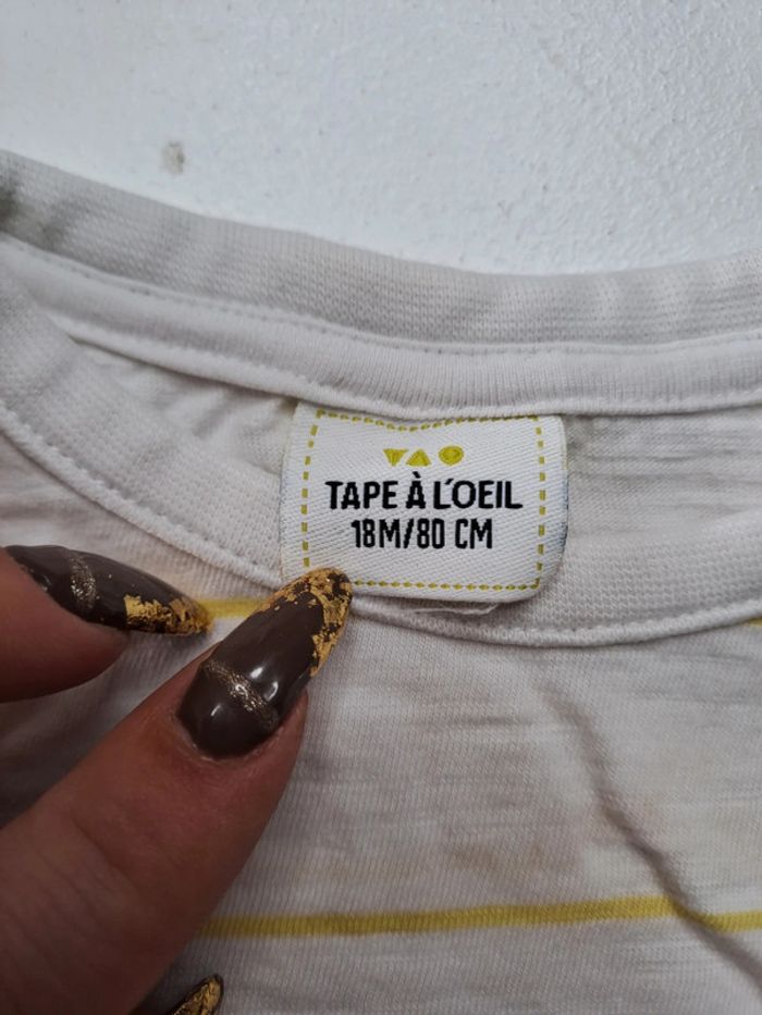 T-shirt blanc jaune bouille d'amour Taille 18 mois 80 cm Marque tape à l'oeil En parfait état #lili7606taille18mois #lili7606tshirt #lili7606tapealoeil #tshirttao18moisgarcon #tshirtgarcon18mois #tshirt18mois #tshirtraye18mois