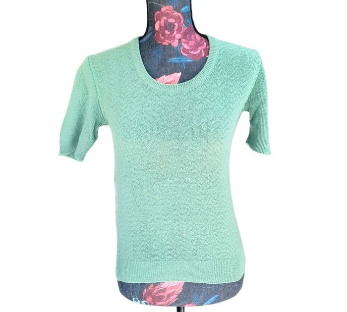Petit pull vert vintage fait main Taille S Épaule à Épaule 32 cm Longueur 56 cm En parfait état #lili7606tailleS #lili7606pull #pullvertfemme #pullvintagefemme #pullvintage #pullmanchescourtes #pullfaitmain