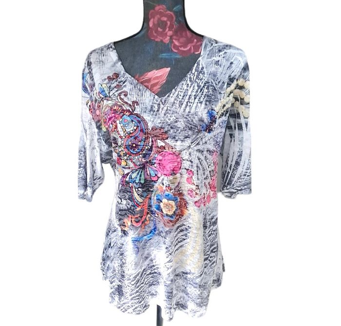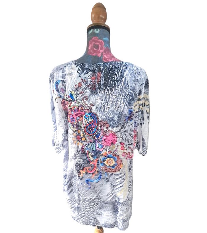 Haut long gris et plusieurs couleurs. Haut du dos dentelle Taille L Épaule à Épaule 43 cm Longueur 73 cm En parfait état #lili7606tailleL #lili7606tshirt #hautlongcoloré #hautfemme40 #hautgrismulticolor #hautfemmeavecdentelles