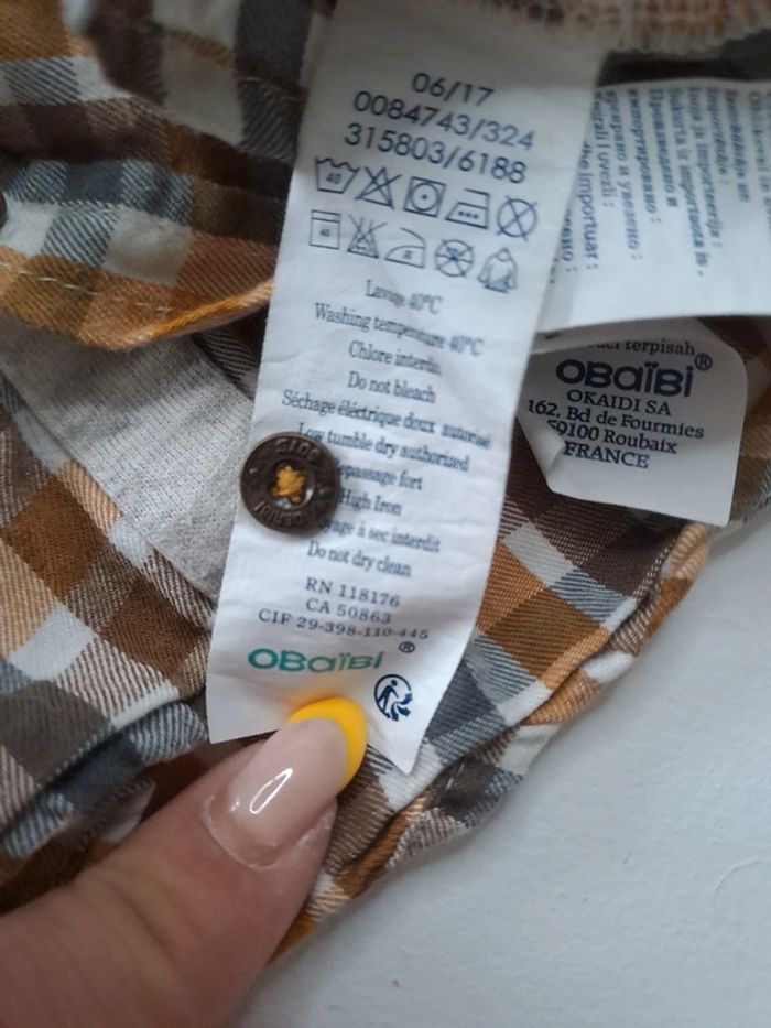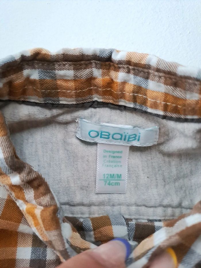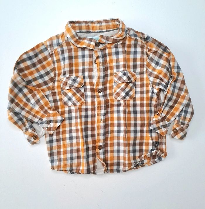 Chemise à carreaux orange et gris. Avec bouton de rechange Taille 12 mois 74 cm Marque obaibi En parfait état #lili7606taille1an #lili7606chemise #lili7606obaibi #chemiseobaibi12mois #chemisegarçon12mois #chemise12mois