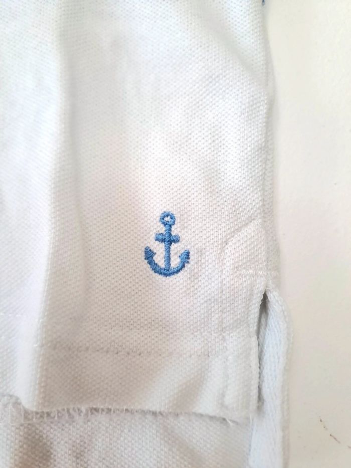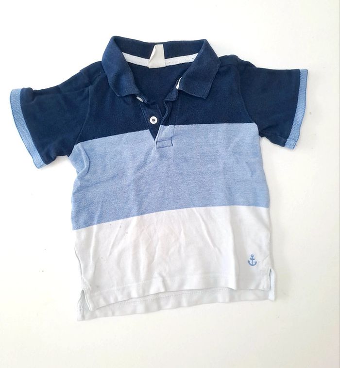 Polo blanc et bleu Taille 12 mois Marque H&M Tache en bas visible sur photo #lili7606taille1an #lili7606tshirt #lili7606hetm #polohetm12mois #pologarcon12mois #polo12mois #pologarcon #polobleu12mois