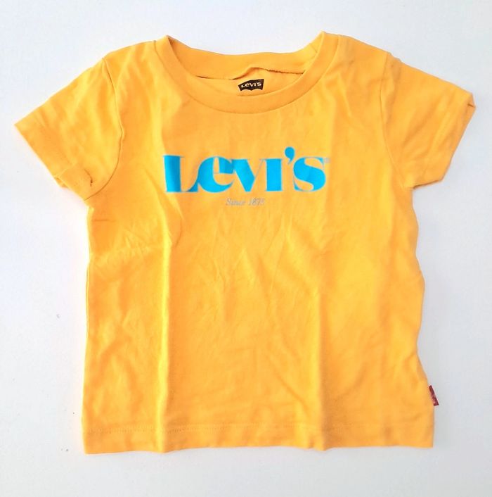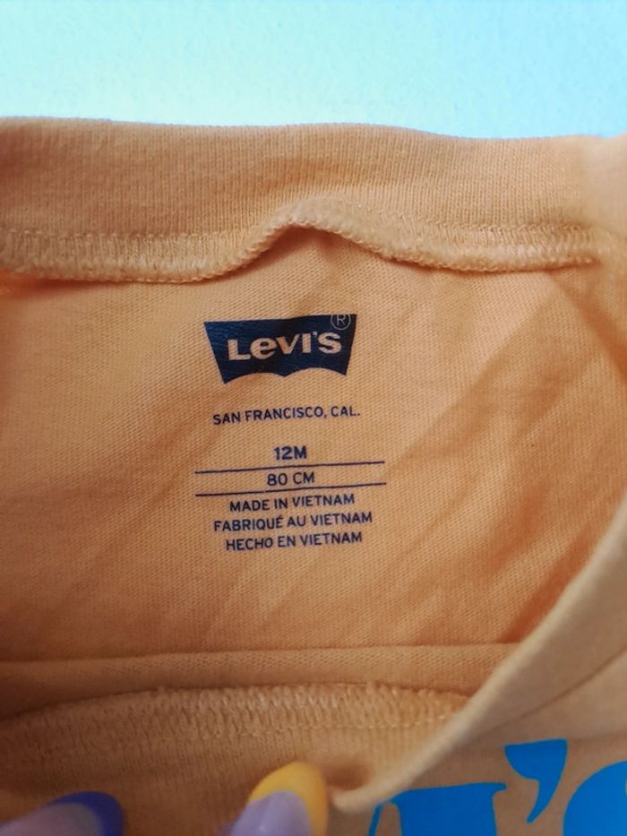 T-shirt jaune/moutarde et bleu ciel Taille 12 mois 80 cm Marque levi's En parfait état #lili7606taille1an #lili7606tshirt #lili7606levis #tshirtlevis12mois #tshirtjaune12mois #tshirtgarcon12mois #tshirtmoutarde12mois