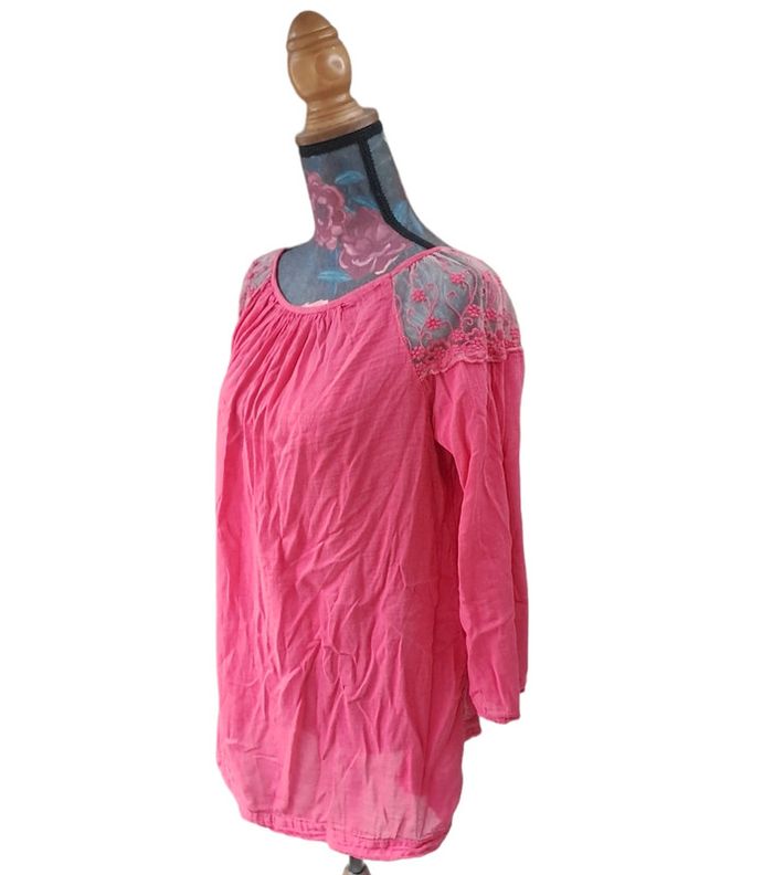 Blouse rose épaules en dentelles. Manches retroussables Taille L Longueur 65 cm #lili7606tailleL #lili7606tshirt #blouserosedentelle #blousefemme40 #blousedentelle40 #blousecoton40 #blouseete40