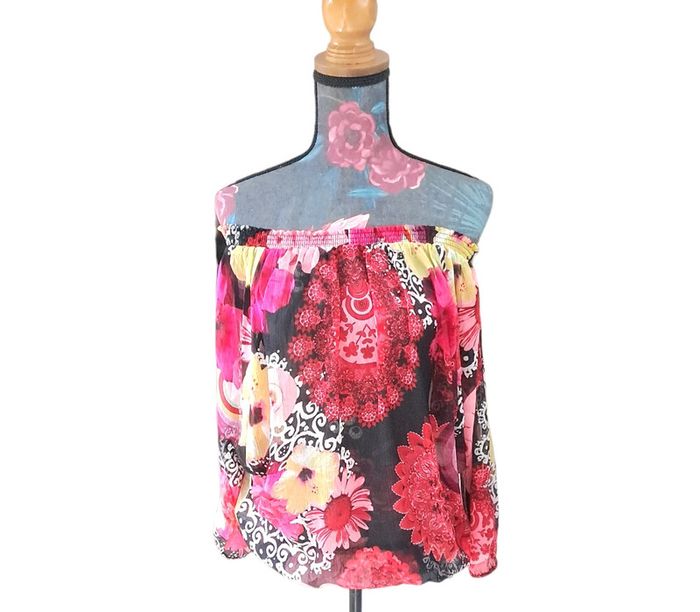 Haut fleurie très coloré. Élastique en bas et en haut possibilité de le mettre Épaule dénudées Taille L Longueur 60 cm En parfait état #lili7606tailleL #lili7606tshirt #hautcolore40 #hautfleuri40 #hautrougefemme #hautétéfemme #hautepaulesdenudees
