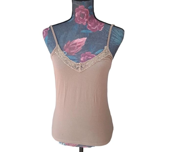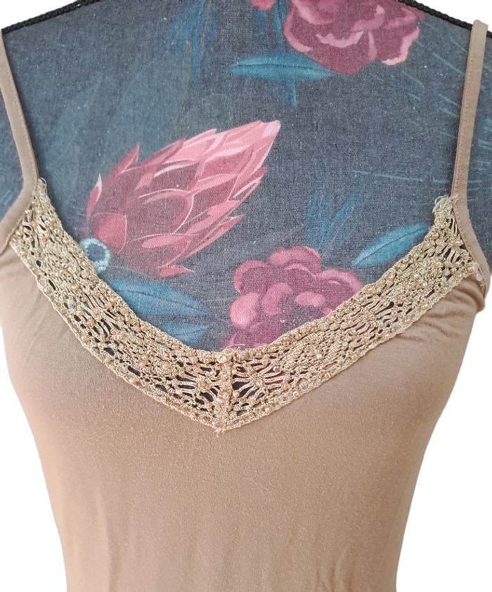 Débardeur marron ornementé à l'avant Taille 40 Longueur 42 cm Marque Caroll #lili7606tailleL #lili7606tshirt #lili7606caroll #tshirtcaroll40 #tshirtfemme40 #debardeur40femme #debardeurmarron40