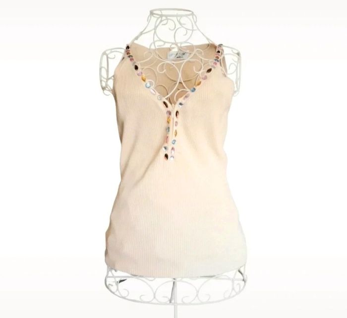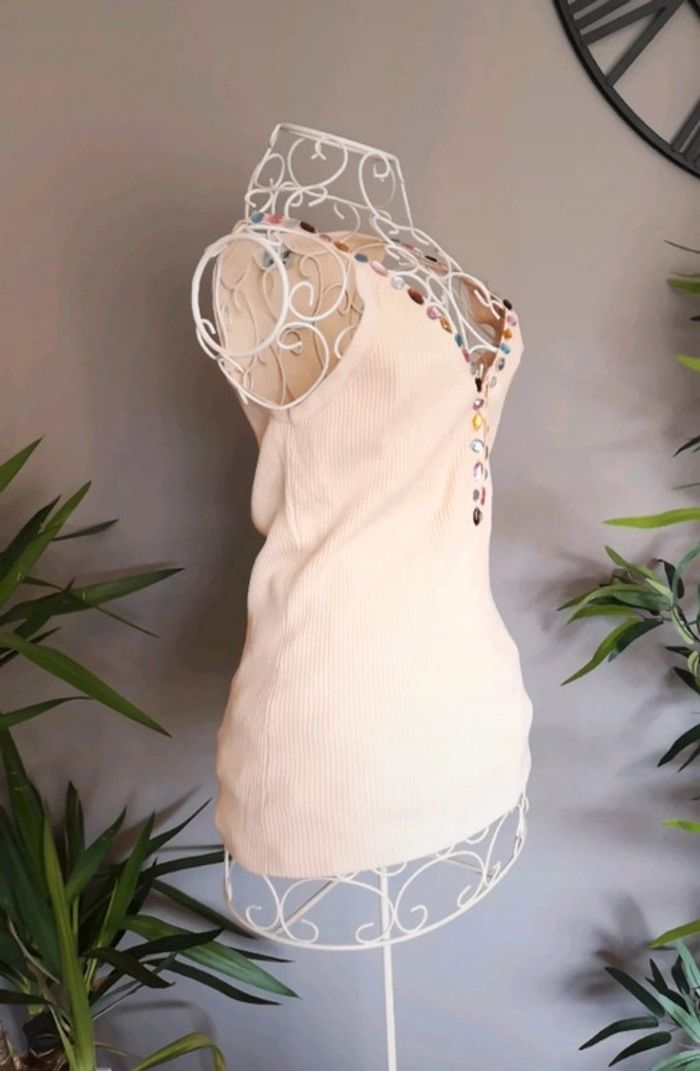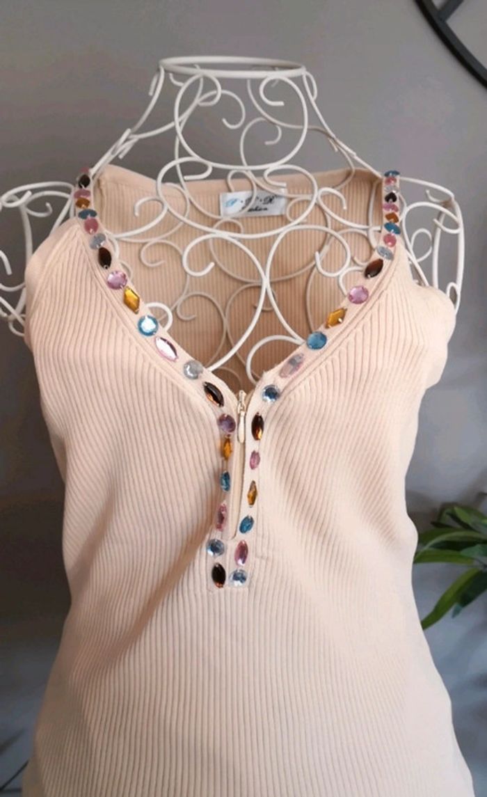 T shirt beige avec un decolté perlé, comporte une fermeture invisible permettant d'ouvrir le decolté. Marque P. P. R fashion Taille M En parfait état sans défauts #lili7606tailleM #lili7606tshirt #lili7606fashion FBV