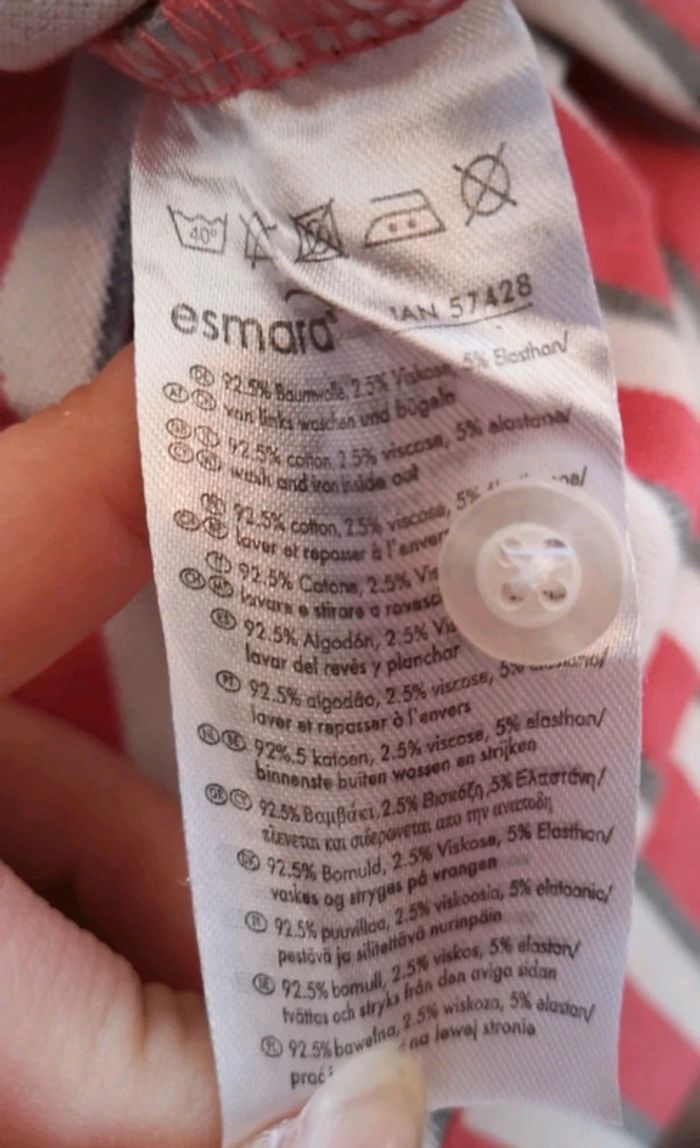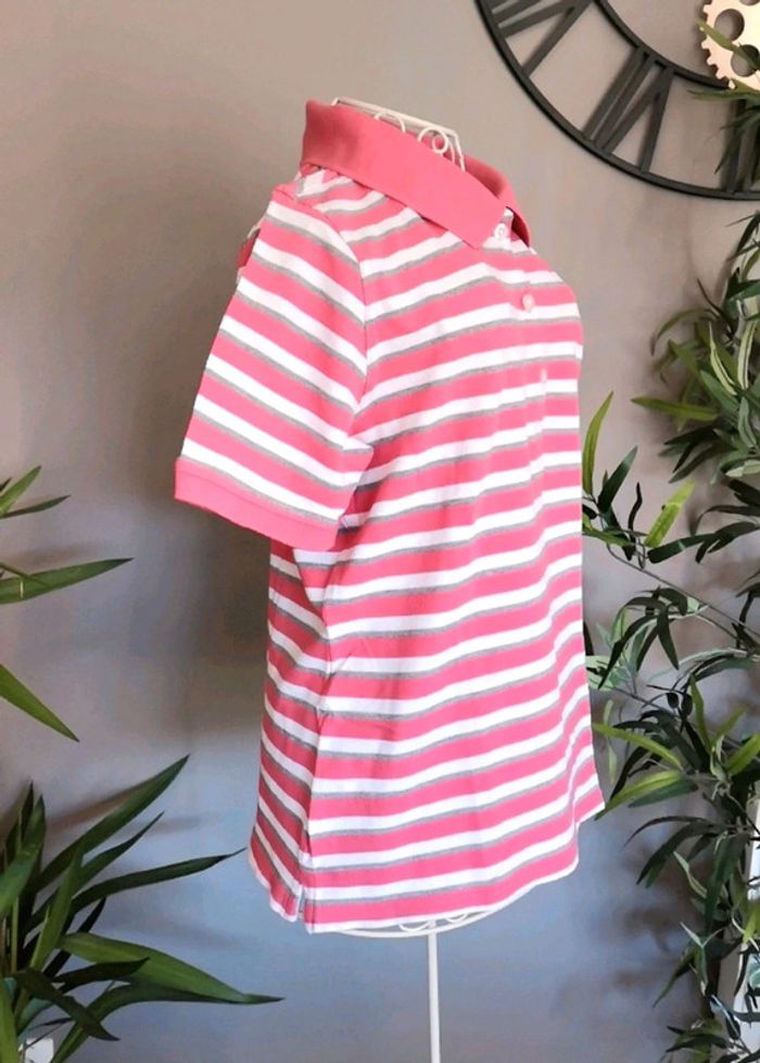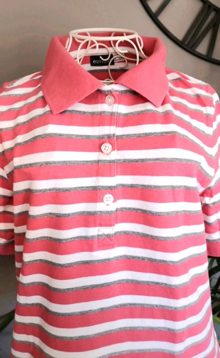 Polo rayé blanc gris et rose Bouton de rechange sur étiquette 92.5 % en coton Marque esmara Taille 42 /44 En parfait état #lili7606tailleXL #lili7606tshirt #lili7606esmara #polorayeesmara42 #poloroseraye #polofemmeesmara42 #polofemme42 #polorose42 BVF