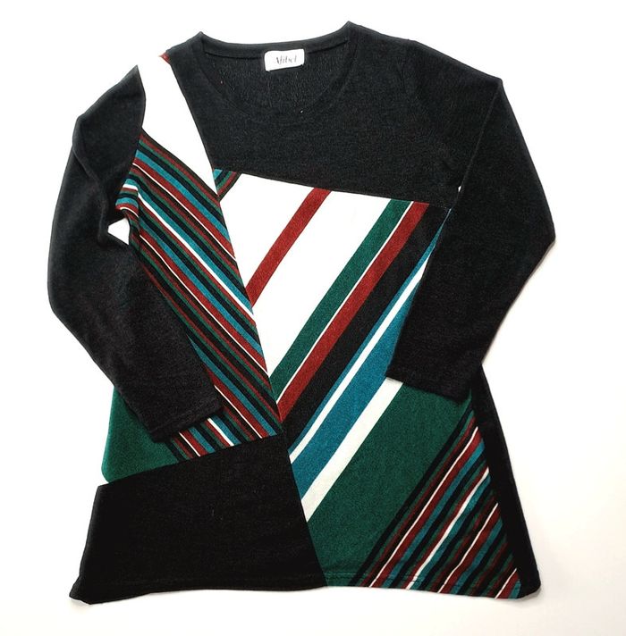 Haut noir et dessin asymétrique. Taille 42/44 Marque afibel #lili7606tailleXL #lili7606tailleXXL #lili7606tshirt #lili7606afibel #hautafibel44 #hautafibel42 #hautdessin #hautfemme42 #hautfemme44 #hautfemme4244