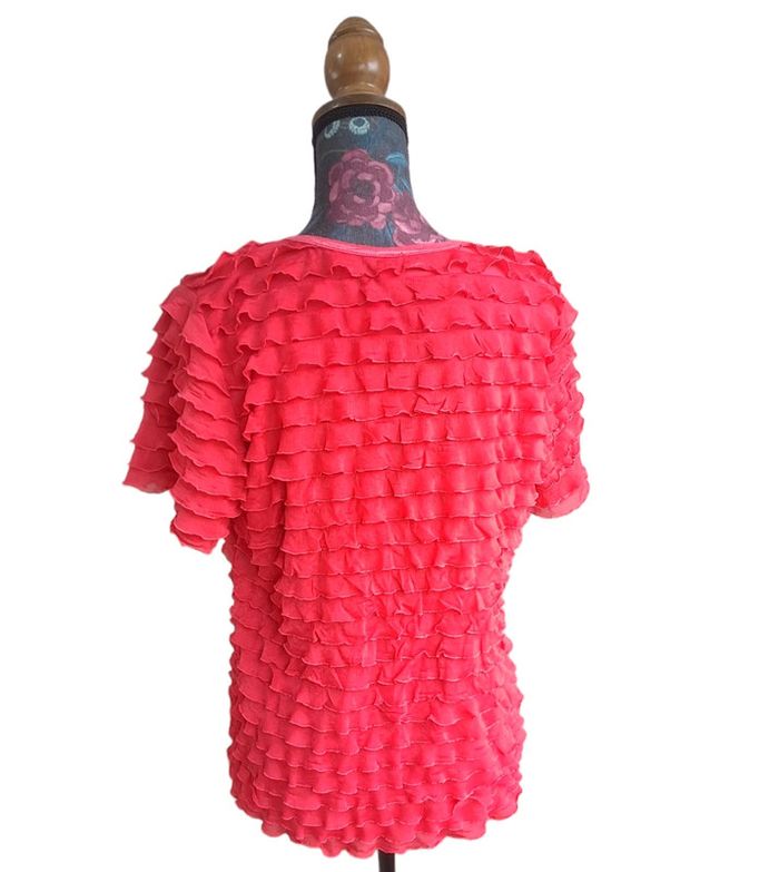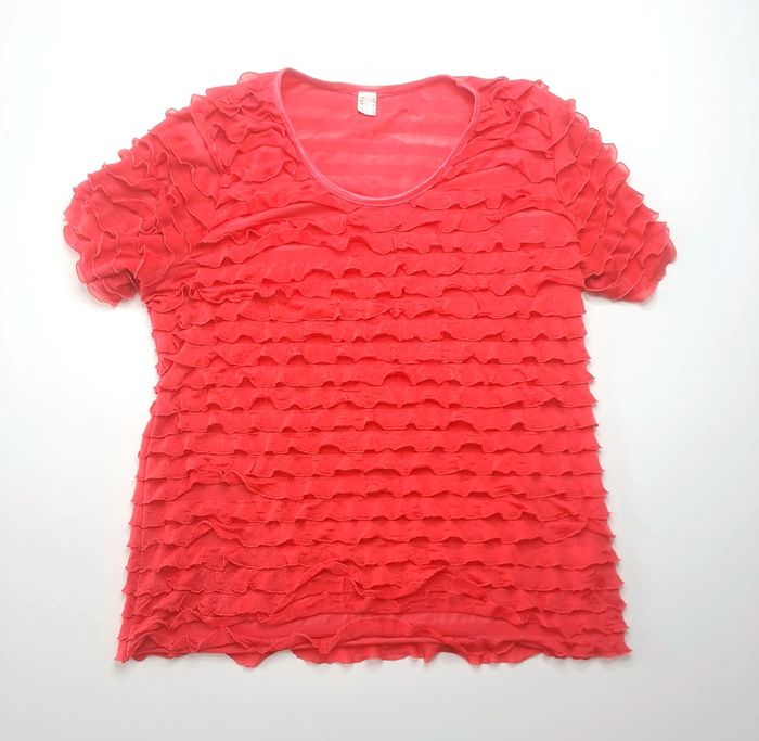T-shirt rouge à froufrous/volants Taille 40 En parfait état #lili7606tailleL #lili7606tshirt #tshirtavolants #tshirtrougefemme40 #tshirtafroufrous #tshirtmanchescourtes #tshirtfemme
