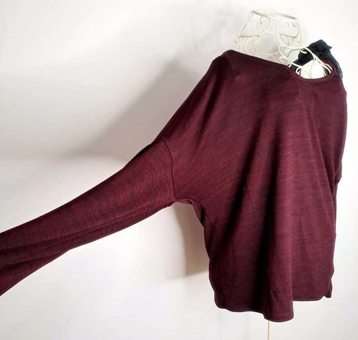 Pull bordeaux manches amples. Une épaules dénudée avec nœud Taille 1/ S Marque Jacqueline riu #lili7606tailleS #lili7606pull #lili7606jacquelineriu #pulljacquelineriu #pullbordeaux36 #pullfemme36 #pullépaulesdenudees #pullvintage