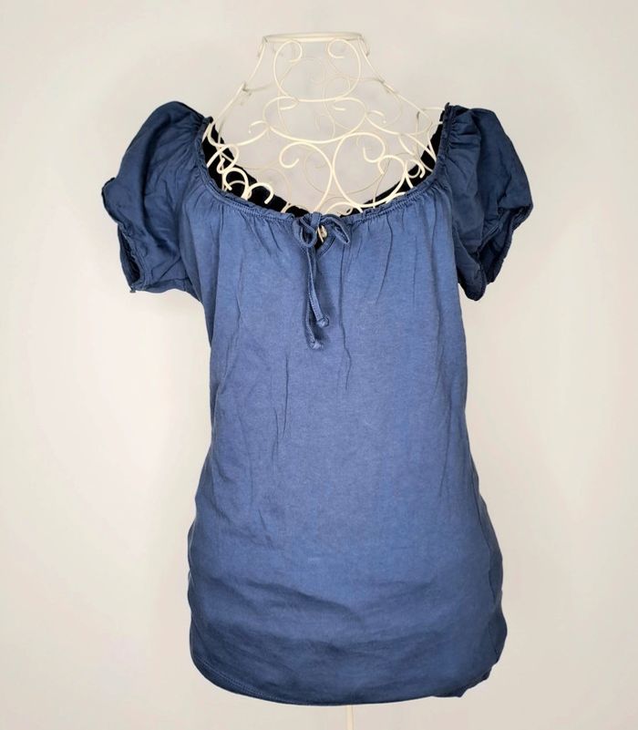 Top bleu avec les épaules dénudé ou non car resserrable. Élastique légèrement fatigué. Taille S Marque esprit #lili7606tailleS #lili7606tshirt #lili7606esprit #topépaulesdénudées #topepauledecouverte #topbleufemme36 #tshirtfemme