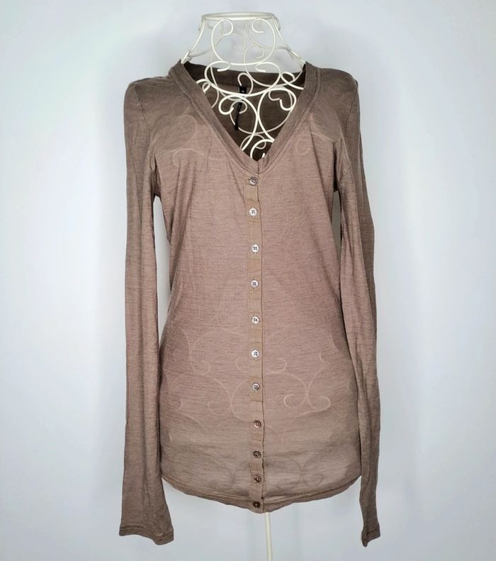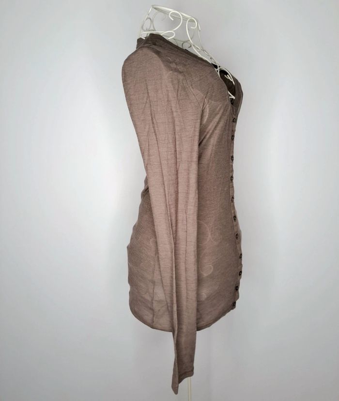 T-shirt marron à boutons à l'avant. Taille M Marque sud express #lili7606tailleM #lili7606tshirt #lili7606sudexpress #Tshirtsudexpress #tshirtmarronsudexpress #tshirtfemmem #tshirtmancheslongues