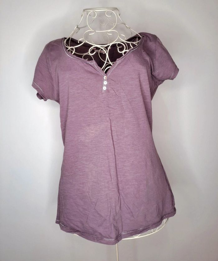 T-shirt violet décolleté à bouton Taille M Marque Camaïeu #lili7606tailleM #lili7606tshirt #lili7606camaieu #tshirtcamaieu38 #tshirtviolet38 #tshirtvioletfemme38 #tshirtfemmecamieu