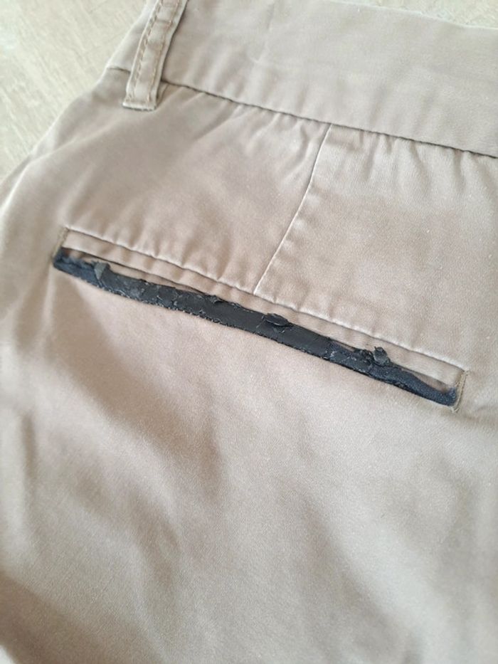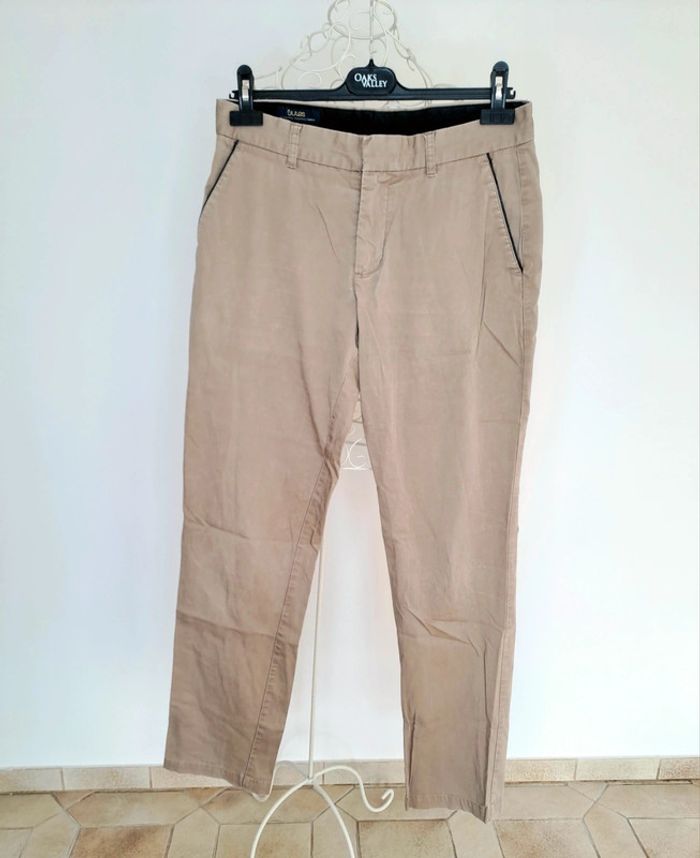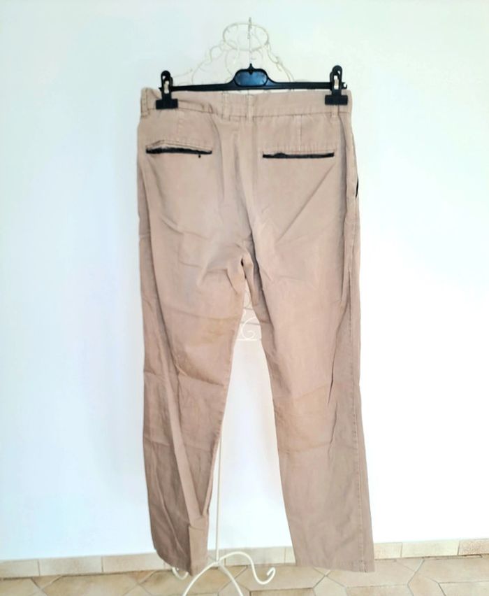 Pantalon beige avec un bouton de rechange Taille 40 Marque Jules Simili cuir abîmé visible sur photo #lili7606tailleL #lili7606pantalon #lili7606jules #lili7606homme #pantalonhomme40 #pantalonbeigehomme #pantalonjules40 #pantalonhommejules