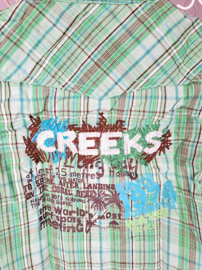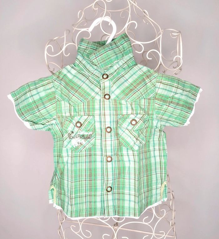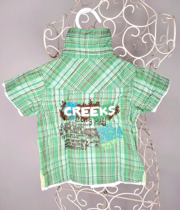 Chemise verte comme neuf avec creeks cousu derrière. Taille 6 mois Marque creeks #lili7606taille6mois #lili7606chemise #lili7606creeks #chemisecreeks6mois #chemisevertecreeks #chemiseverte6mois